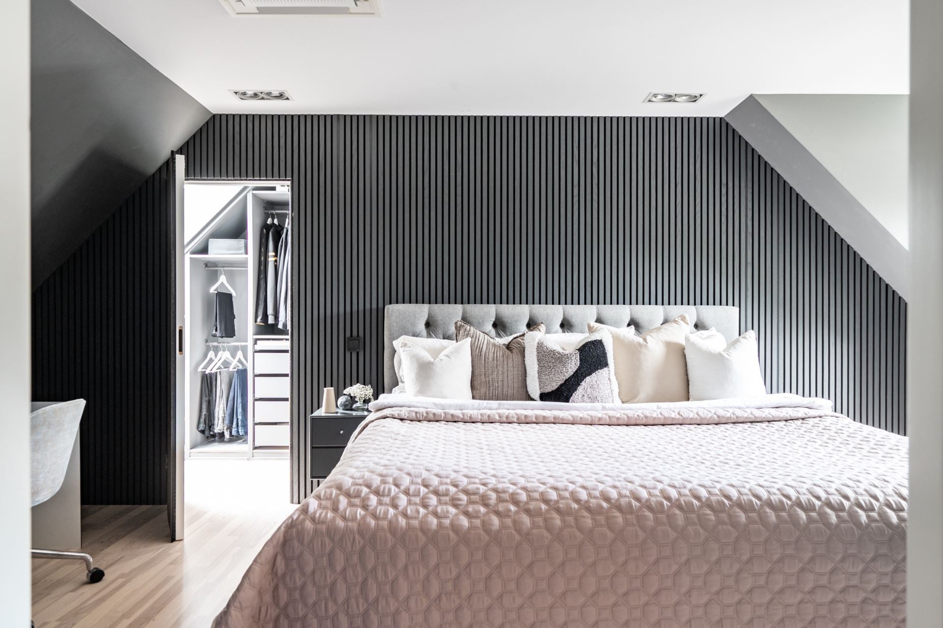 Unsere akustischen Holzpaneele schaffen ruhige und harmonische Atmosphären sowohl in privaten als auch in öffentlichen Räumen – von Schlafzimmern und Wohnzimmern bis hin zu Büros und Projektumgebungen.