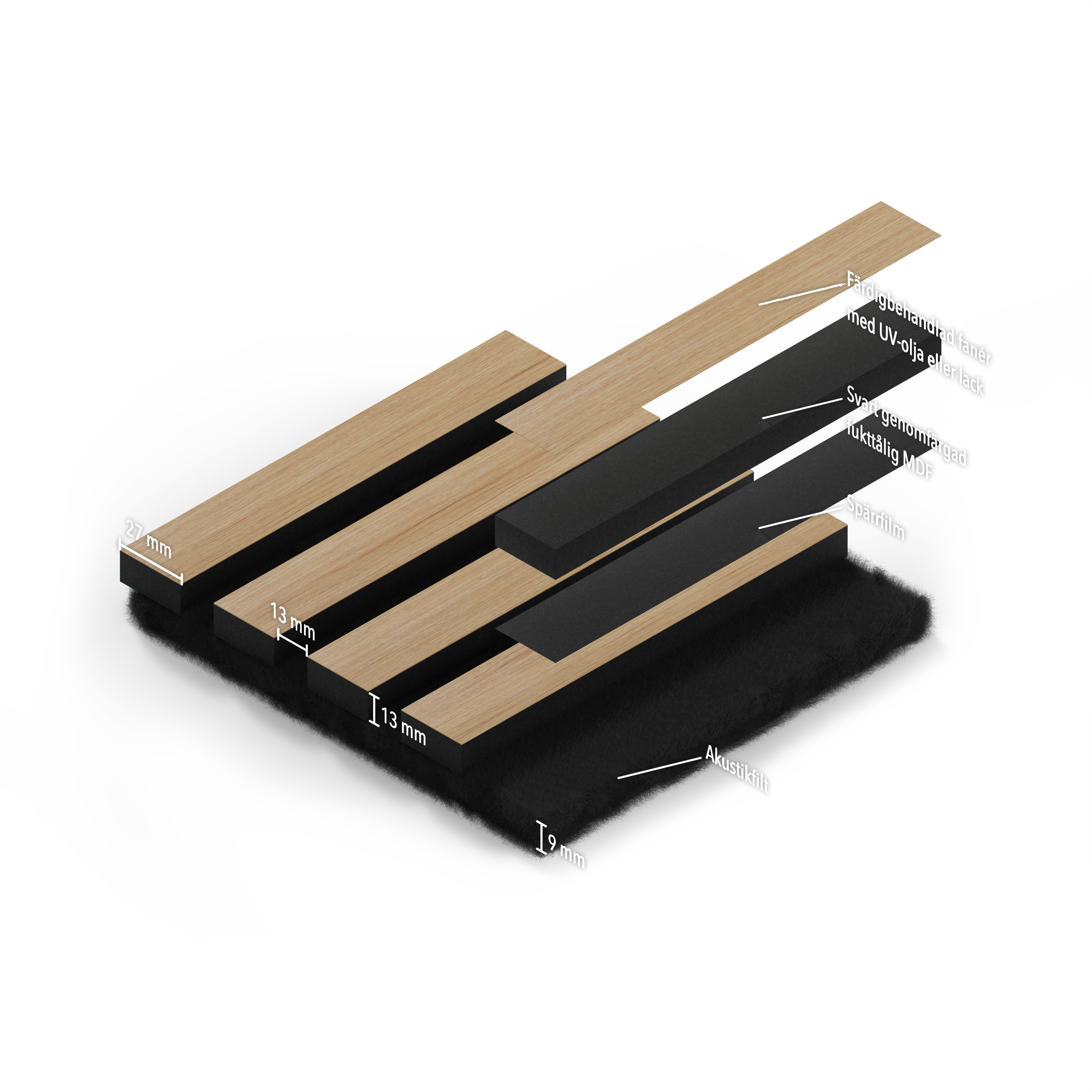 - Dicke des Akustikfilzes: 9 mm