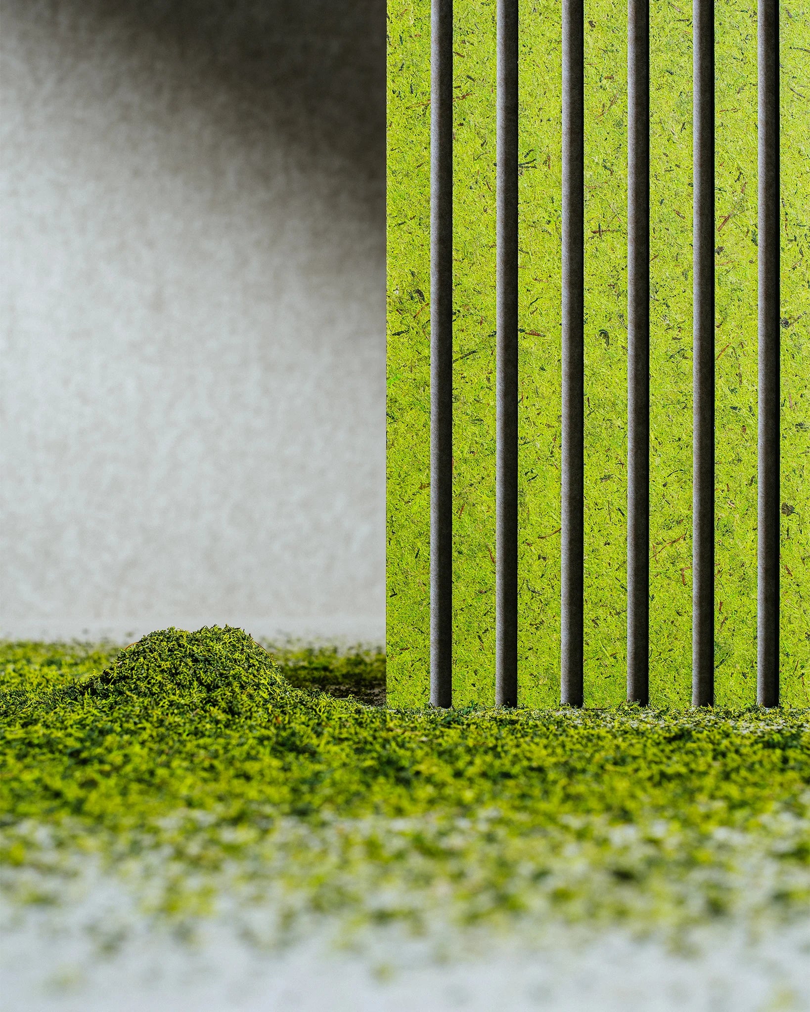 Die Oberfläche Moss Light Green von Organoid® besteht aus echtem, hellgrünem Flechtenmoos, das sorgfältig konserviert wurde, um seine Farbe, Weichheit und organische Struktur zu erhalten. Der frische Grünton verleiht ein Gefühl von Leben, Frische und Naturverbundenheit – sowohl in privaten als auch in öffentlichen Umgebungen, in denen Wohlbefinden und Design im Mittelpunkt stehen.