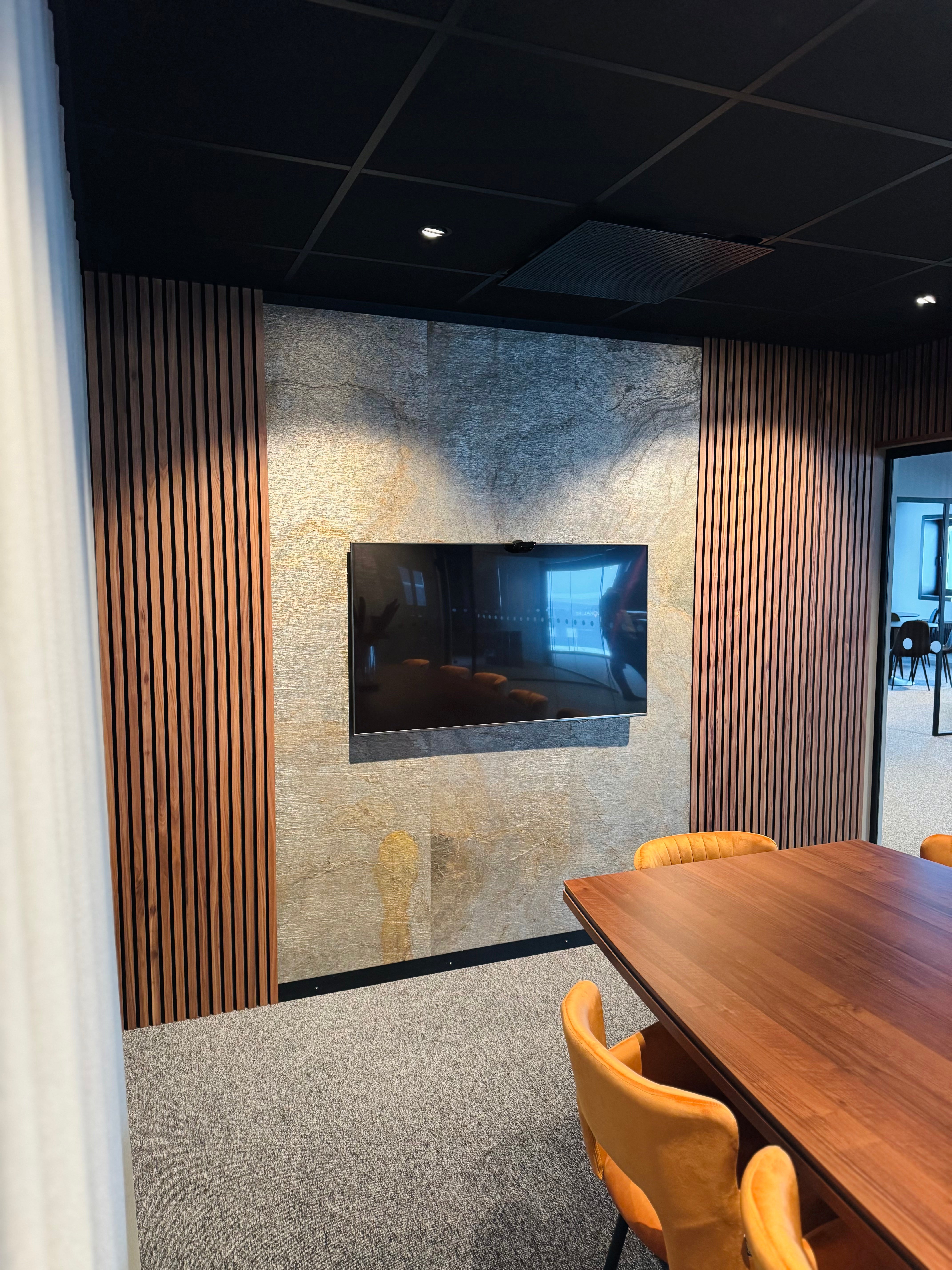Stone design panels are smooth and developed with full focus on aesthetics and materiality. They have no sound-absorbing function.